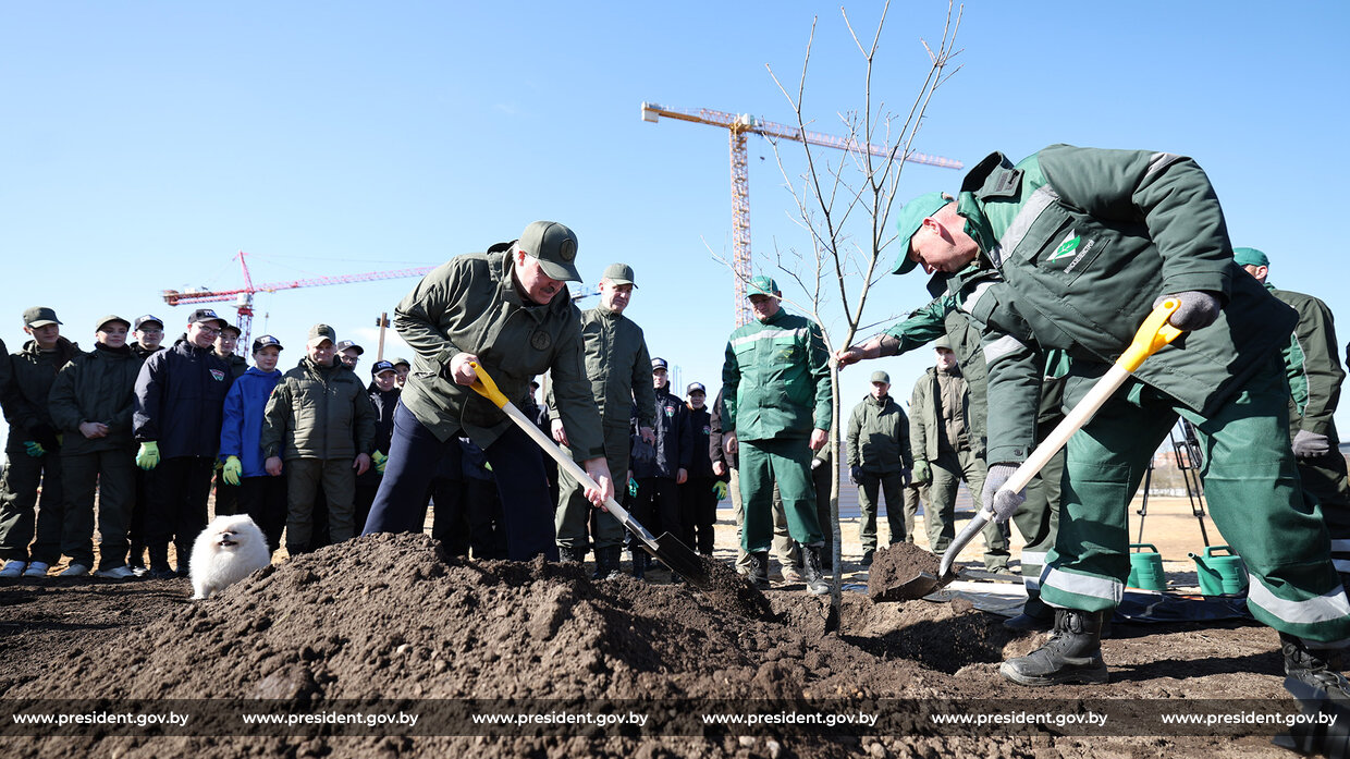 Мастер-класс по посадке деревьев, капсула времени и общение с журналистами. Александр Лукашенко принял участие в республиканском субботнике