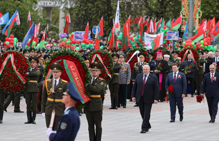 А. Лукашенко после церемонии возложения венков и цветов к монументу Победы ответил на вопросы журналистов