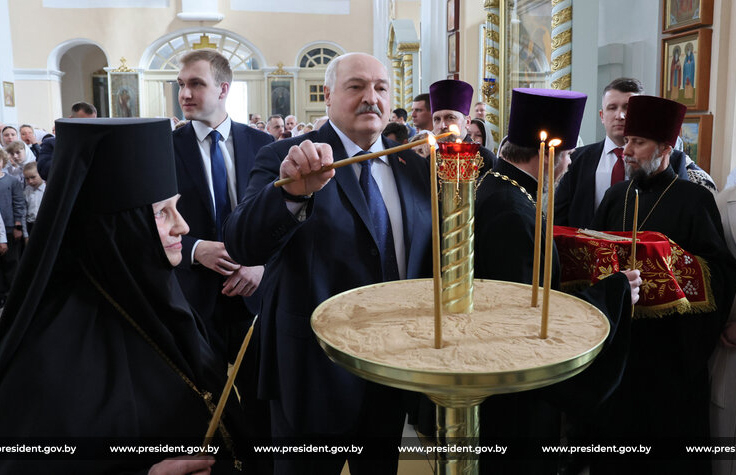 А. Лукашенко в Пасху посетил богослужение в Толочине и пообщался с прихожанами