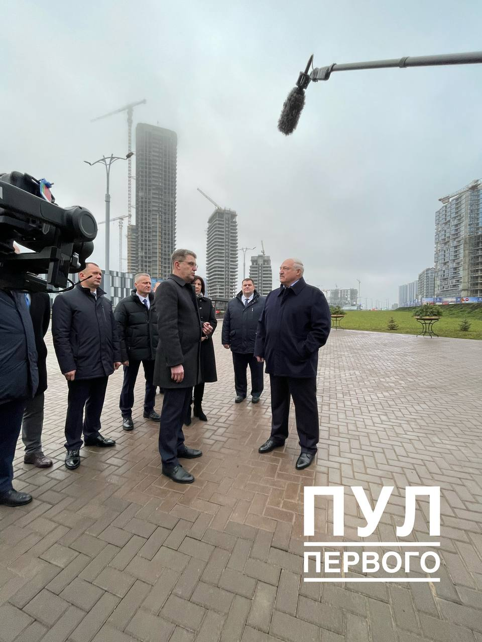 Непосредственно перед посещением станций Президент ознакомился с развитием нового жилого района Минска, расположенного в месте пролегания Зеленолужской линии метро.