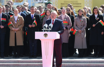 «Марина Василевская вместе с представителями молодежи произнесла клятву верности государственным символам, после чего военнослужащие роты почетного караула передали ей Государственный флаг, а Марина Василевская передала его Президенту. Этот государственный символ займет почетное место во Дворце Независимости. Флаг, который был передан, тот самый, который в 2024 году благодаря первой белорусской женщине-космонавту побывал на МКС, закрепив статус Беларуси как космической державы», – говорится в сообщении.