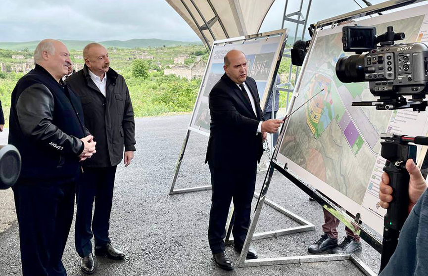 Ильхам Алиев сел за руль автомобиля, на котором передвигается с Александром Лукашенко по городу Физули