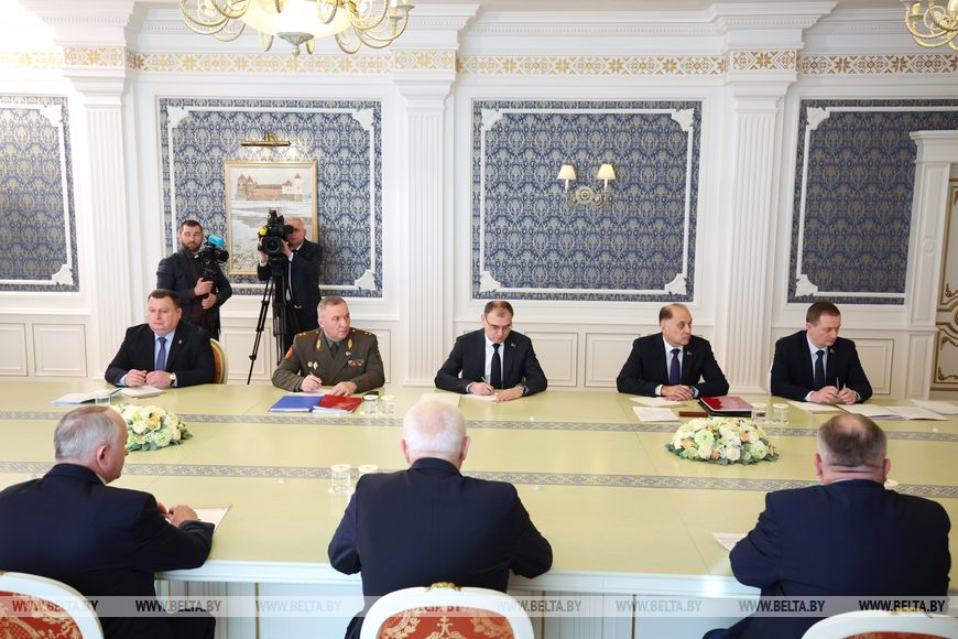 В числе участников совещания глава Администрации Президента Дмитрий Крутой, Премьер-министр Александр Турчин, госсекретарь Совета Безопасности Александр Вольфович, вице-премьеры Виктор Каранкевич и Анатолий Сивак, председатель КГК Василий Герасимов, министр обороны Виктор Хренин, председатель Госкомвоенпрома Дмитрий Пантус и министр финансов Владислав Татаринович.