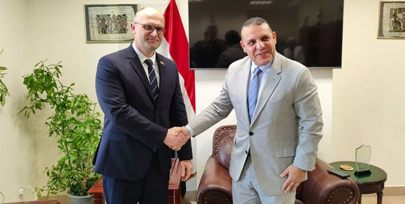 Чрезвычайный и Полномочный Посол Республики Беларусь в Египте Евгений Соболевский встретился 6 января с первым заместителем министра инвестиций и внешней торговли Египта, главой Египетской коммерческой службы Абдельазизом аль‑Шерифом. Об этом сообщили в Министерстве иностранных дел Беларуси.