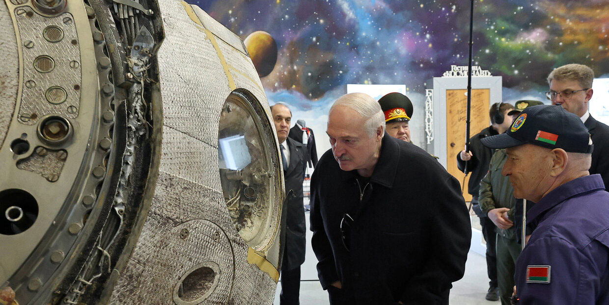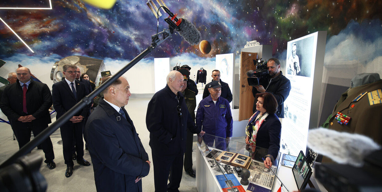 Во время посещения аэроклуба ДОСААФ Президент ознакомился с экспозицией павильона «Космос», где представлены личные вещи белорусских космонавтов и Юрия Гагарина. Внимание Александра Лукашенко особенно привлек спускаемый аппарат корабля «Союз». О представленных исторических экспонатах гостям рассказала Наталья Гагарина, племянница первого космонавта.