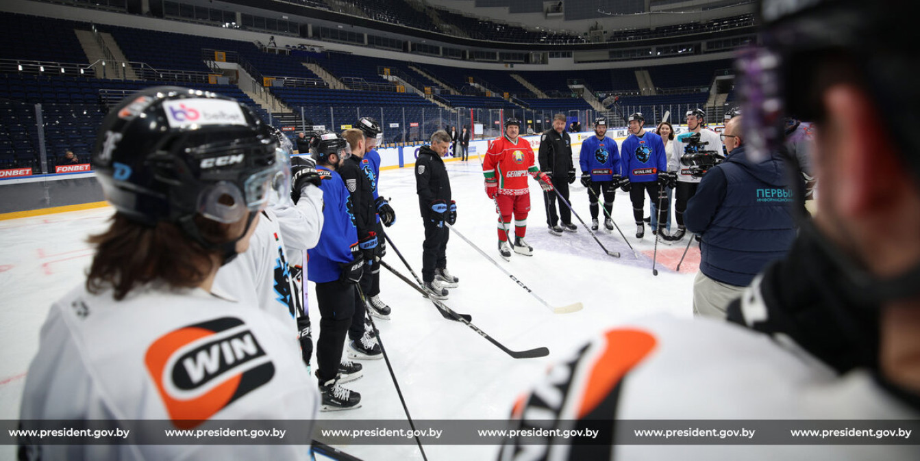 Президент Беларуси Александр Лукашенко заглянул на тренировку «Динамо‑Минск» в «Минск‑Арене». Команда столичного клуба КХЛ встретила Главу государства на льду, сообщает «Пул Первого».