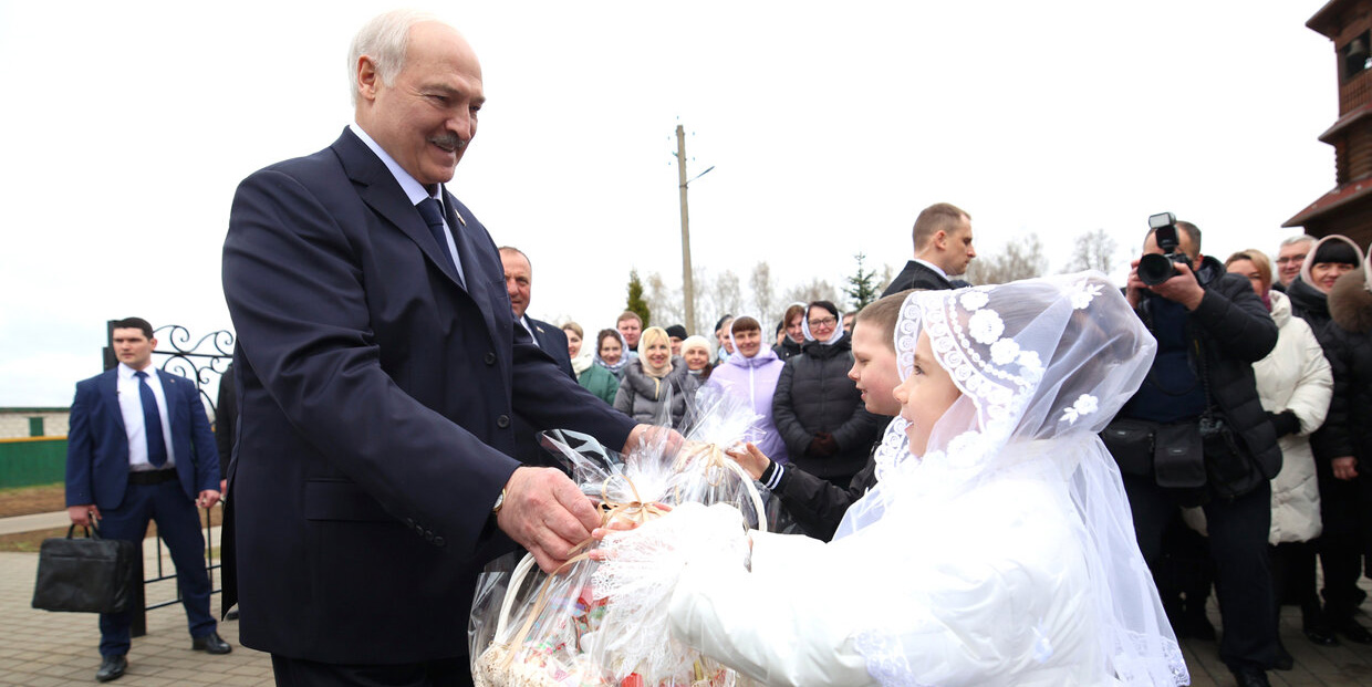Президент Беларуси Александр Лукашенко провел праздничное пасхальное утро на малой родине – с жителями агрогородка Евдокимовичи Шкловского района.