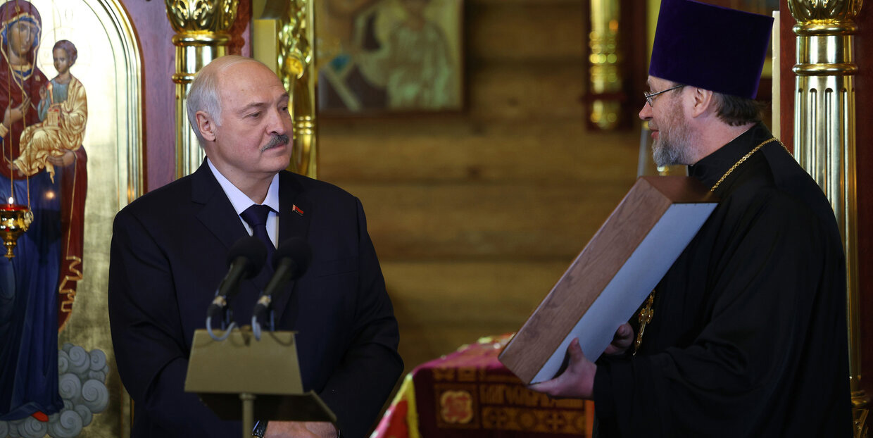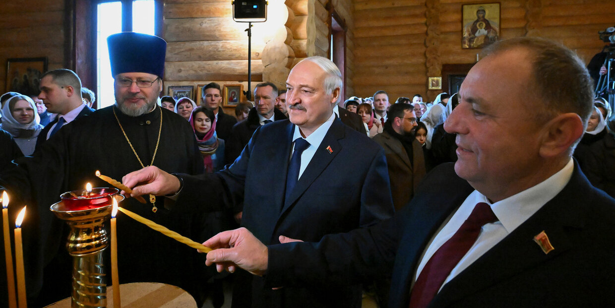 Александр Лукашенко принял участие в богослужении в храме Святителя Николая Чудотворца, но прежде была зажжена Пасхальная свеча.