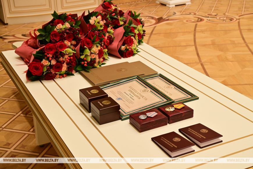 «Звания Героя Беларуси удостоена Марина Василевская. Орденом Почета награжден председатель президиума Национальной академии наук Беларуси Владимир Гусаков. Медаль "За трудовые заслуги" Президент вручил генеральному директору авиакомпании "Белавиа" Игорю Чергинцу, а специальные листы об объявлении Благодарности Президента Республики Беларусь – космонавту Анастасии Ленковой и заместителю начальника управления аэрокосмической деятельности НАН Беларуси Ивану Буче. Александр Лукашенко также вручил благодарственные письма Президента родителям Марины Василевской и Анастасии Ленковой», – говорится в сообщении.