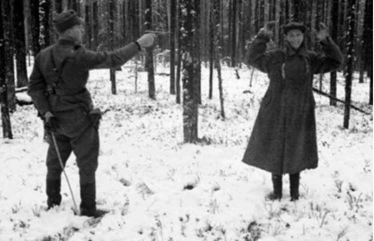 Восточная Карелия, ноябрь 1942 год. За секунду до расстрела. Советский разведчик улыбается, глядя прямо в камеру. Министерство обороны Финляндии в 2006 году обнародовало эту фотографию.