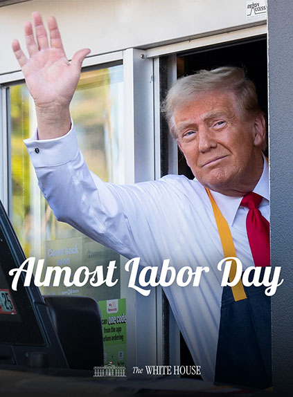 На странице Белого дома в соцсети Х опубликовали фото президента США Дональда Трампа за работой в McDonald's. Таким оригинальным способом американцев поздравили с Днем труда, который отмечается в стране в первый понедельник сентября.
