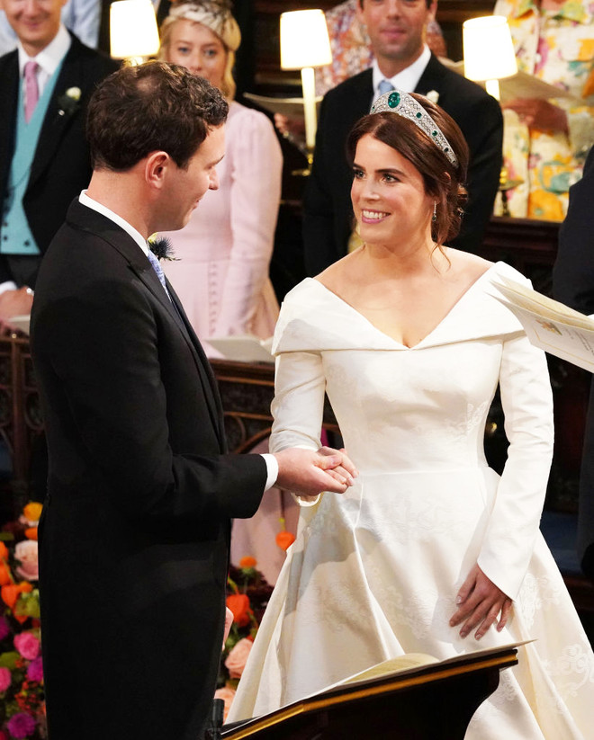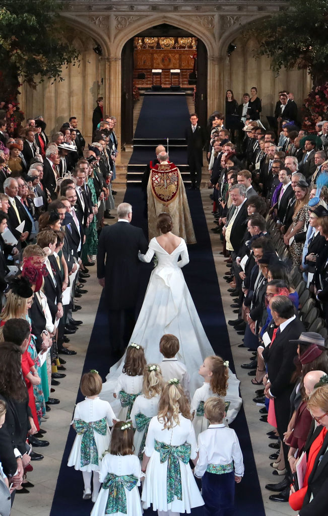 Церемония бракосочетания прошла в часовне Святого Георгия в Виндзорском замке. Невеста блистала в роскошном белом платье из плотной ткани с аккуратным декольте.