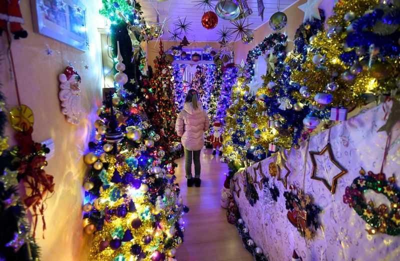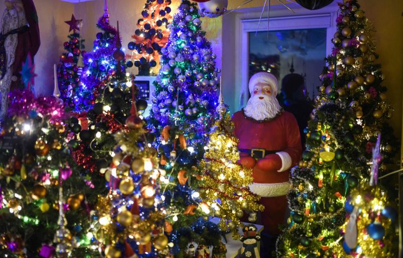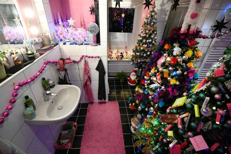 Супруги начали готовиться к рекорду еще в сентябре. Елки расположены по всему дому, даже в ванной комнате.
