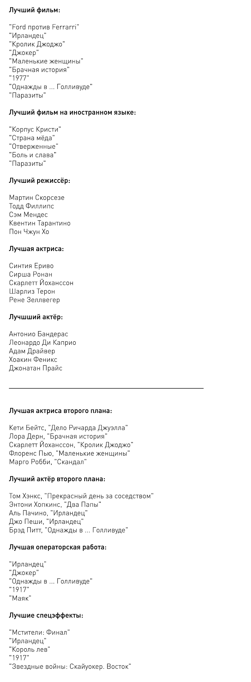 Объявлены номинанты на премию «Оскар». Список претендентов