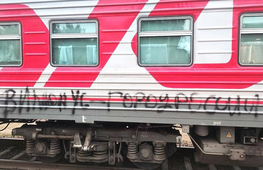 Сообщается, что под угрозой отцепки вагонов от поезда литовские власти заставили начальника состава, а также проводников вручную стереть нанесенные неустановленными лицами краской надписи.