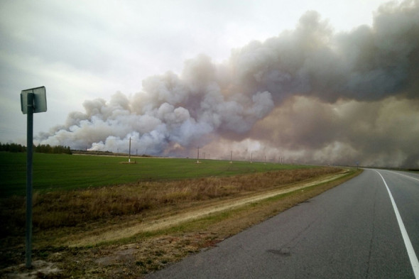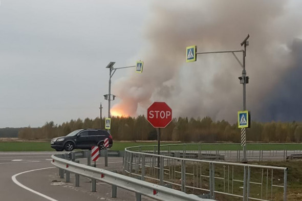 Неподалеку от поселка Желтухино из-за загоревшейся травы начался пожар. По причине сильного порывистого ветра огонь перекинулся на склад с боеприпасами.