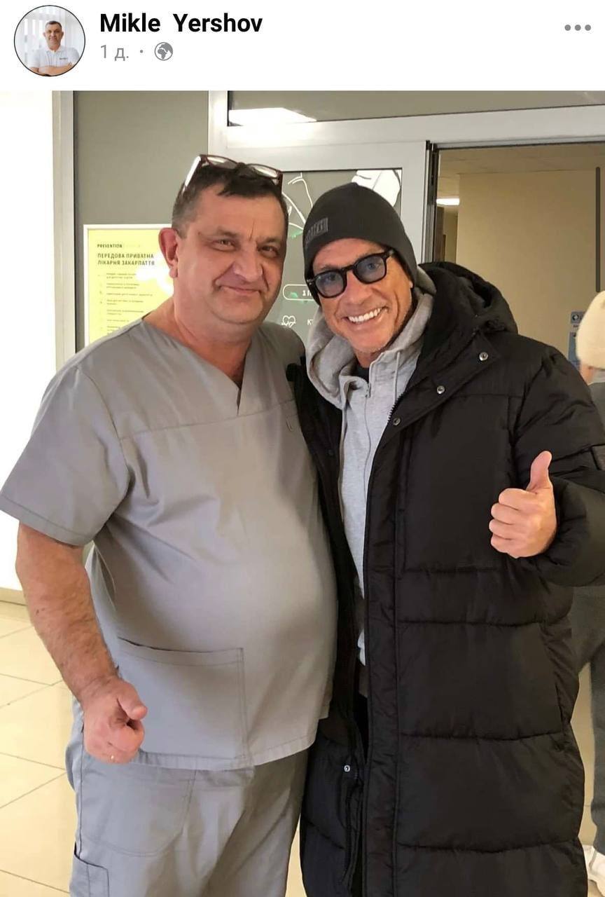 «Голливудский актер Жан-Клод ван Дамм побывал в Ужгороде. Свою поездку он не афишировал, но о ней стало известно после того, как совместное фото с ним опубликовал в соцсетях местный врач, работающий в клинике, которую посетил заморский гость», – пишет «Страна» в своем Telegram-канале.