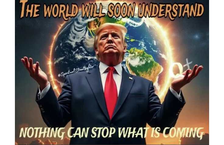 Президент Соединенных Штатов Дональд Трамп разместил в социальной сети Truth Social ссылку на пост другого пользователя в X, на котором изображен сам лидер с подписью: «Мир скоро поймет. Ничто не сможет остановить то, что грядет».