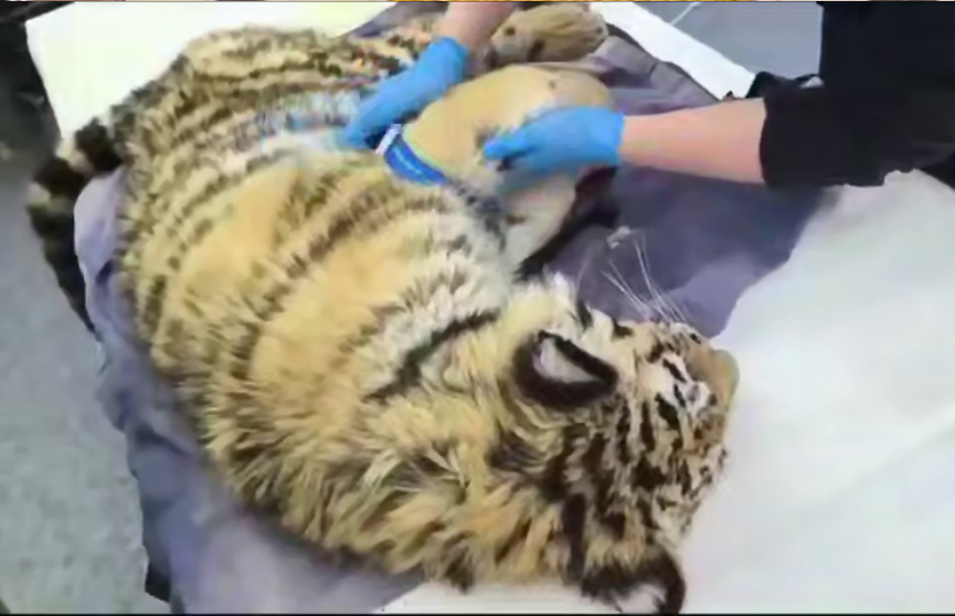 Сообщается, что тигренка нашли обезвоженным и в высокой степени истощения.