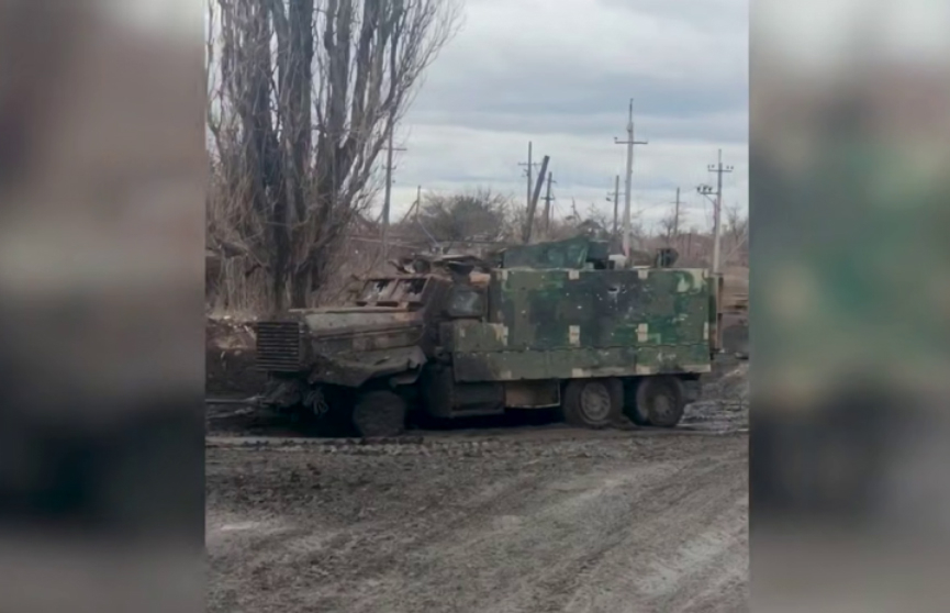 «Видно, что во вражескую машину было несколько попаданий кумулятивными снарядами, после чего она загорелась. Отсек для десанта, водителя и командира выгорел полностью. Группа эвакуации танкового батальона вытянула подбитого "иностранца" в тыловой район», – пояснил военкор.